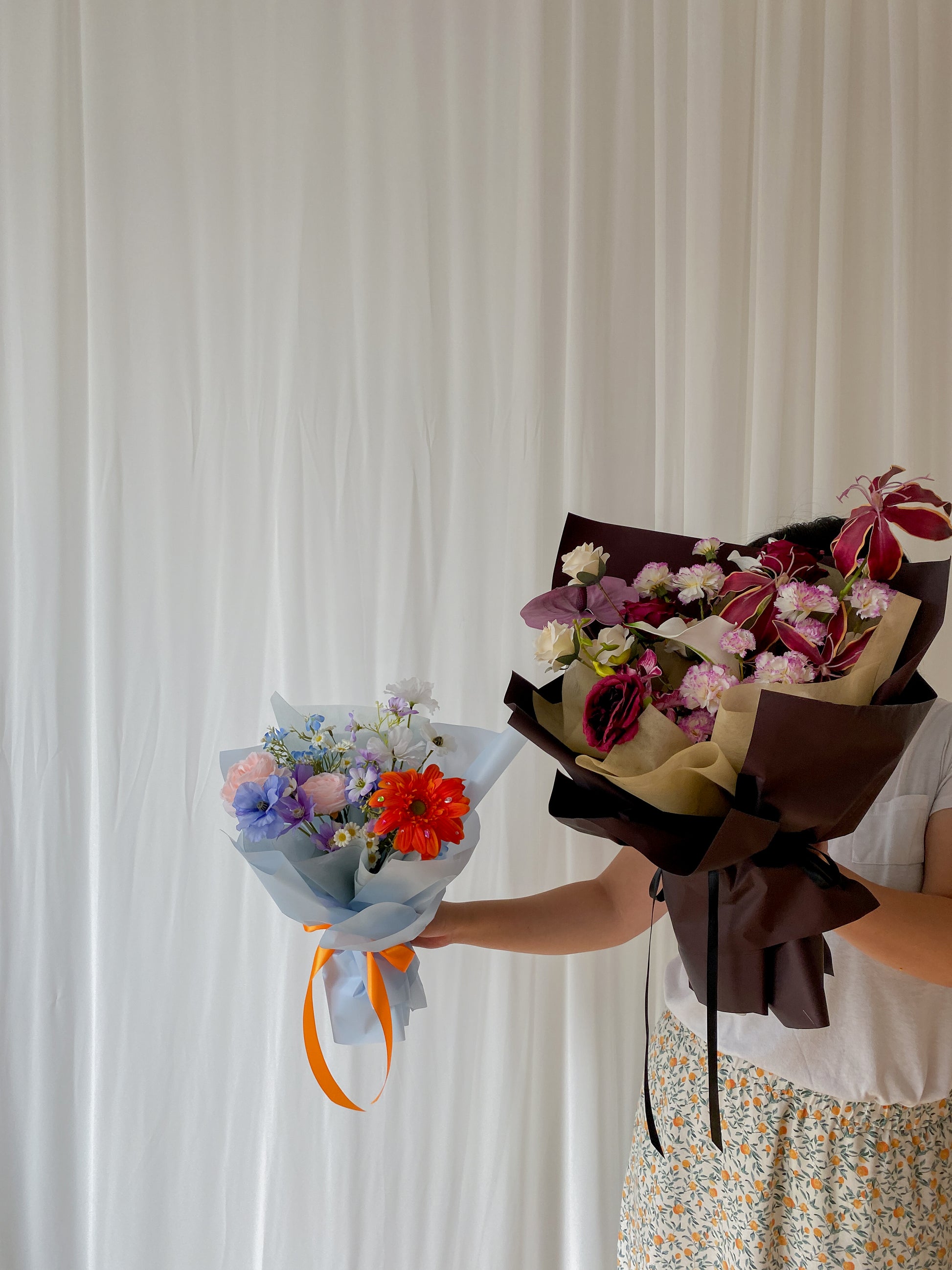 Please note: The images serve as inspiration, bouquets are created in our style & interpretation. The choice of flowers may vary depending on availability.
