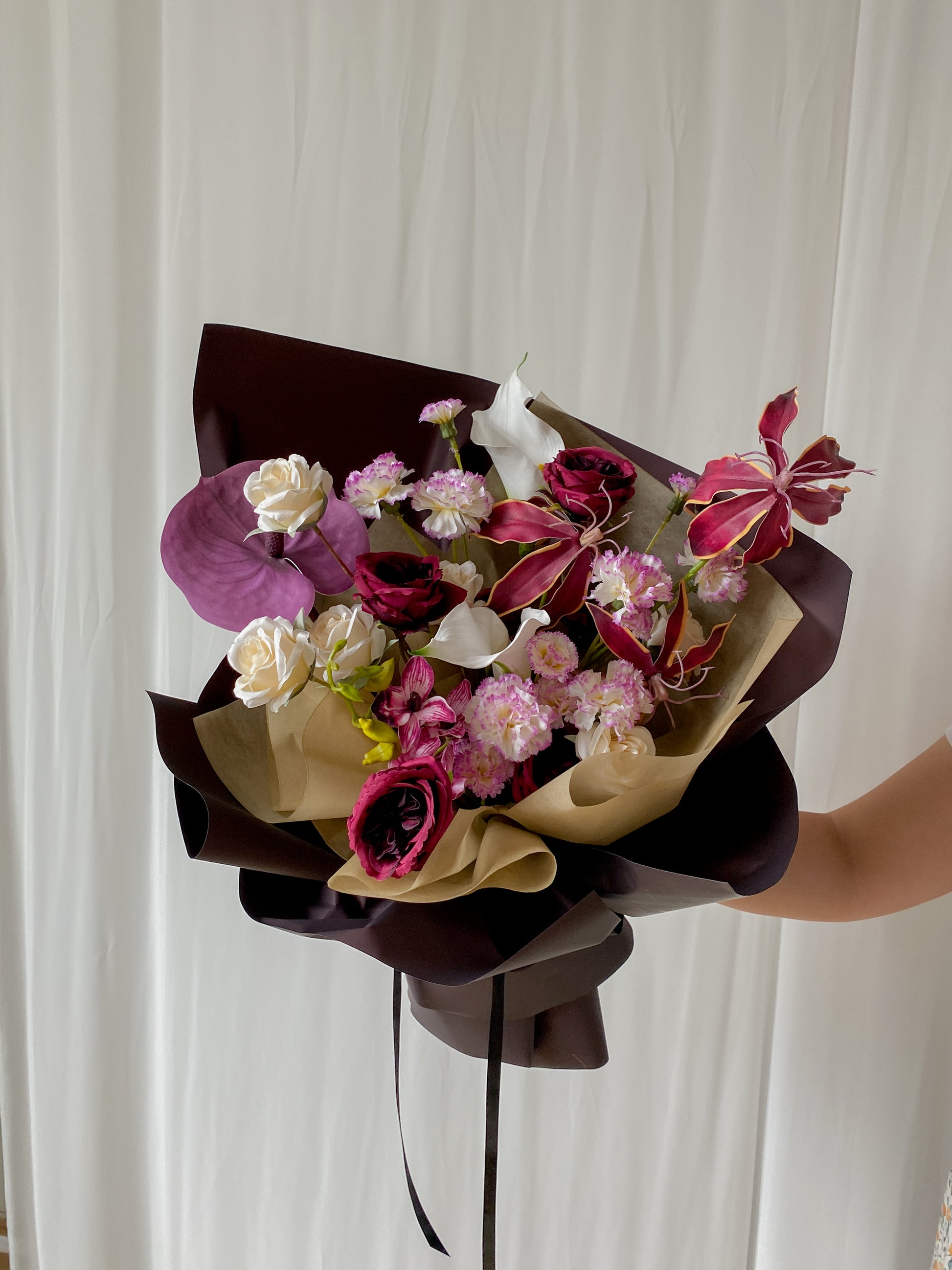 One of our newest creations, this moody and sophisticated bouquet is crafted from high-quality faux florals. Featuring rich, earthy tones of deep burgundy, muted cream, and soft brown, this arrangement evokes the quiet romance of old libraries and autumn afternoons. Perfect for adding a touch of depth to your space, gifting to a loved one, or styling as a centerpiece, this bouquet captures the timeless charm of the dark academia aesthetic.