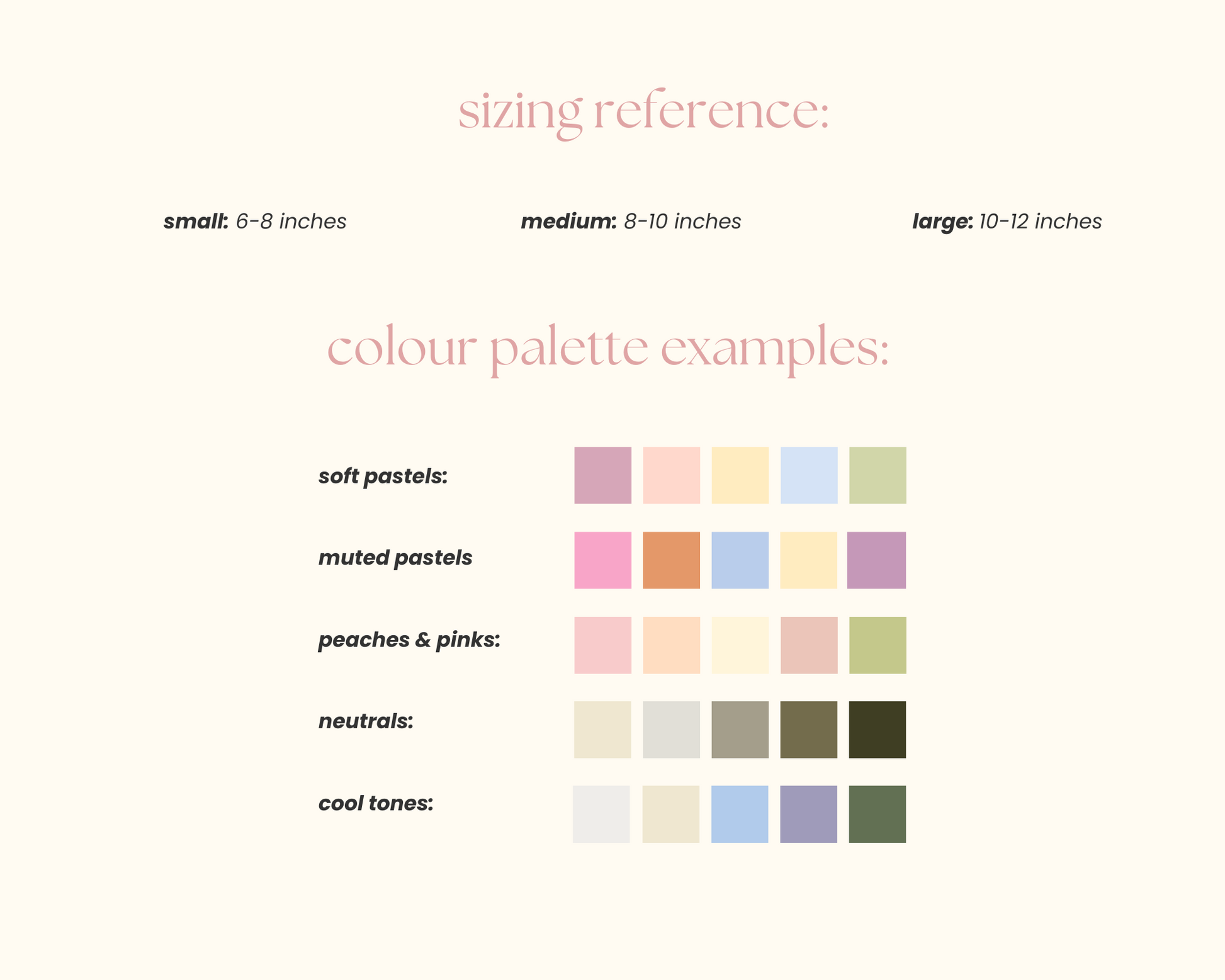 - Peaches & Pink: Soft pink, blush, peach, cream.